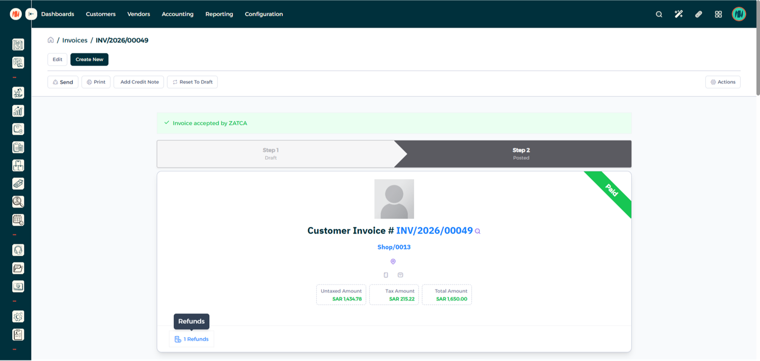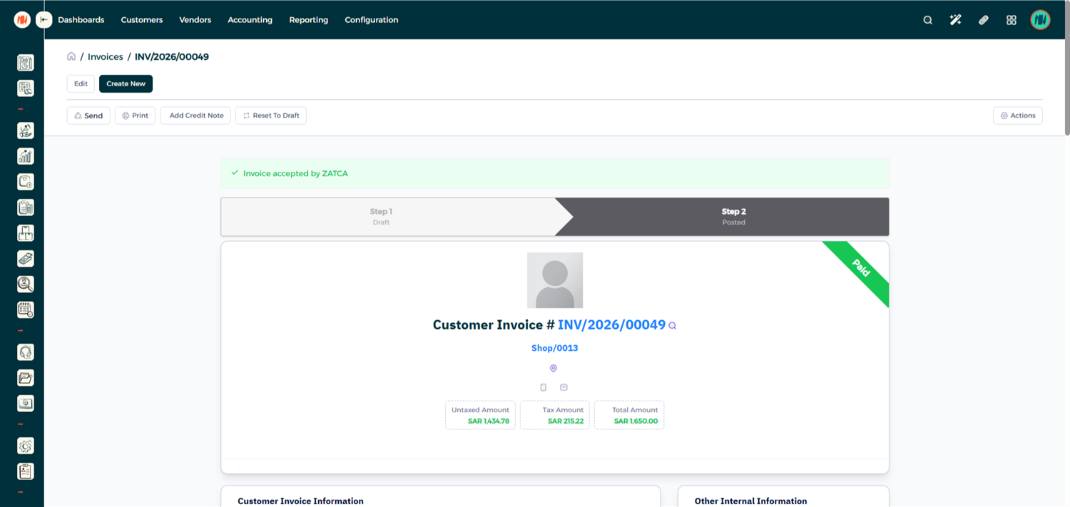 2- Open the invoice you just created and you will see that the invoice has been automatically submitted to ZATCA.