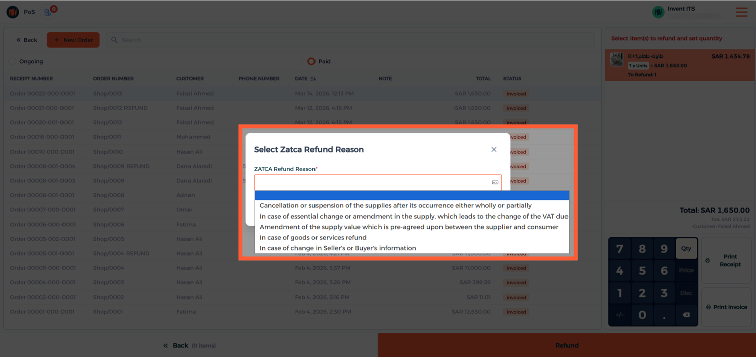 How to Create ZATCA-Compliant POS Invoices and Refunds in Invent ERP?