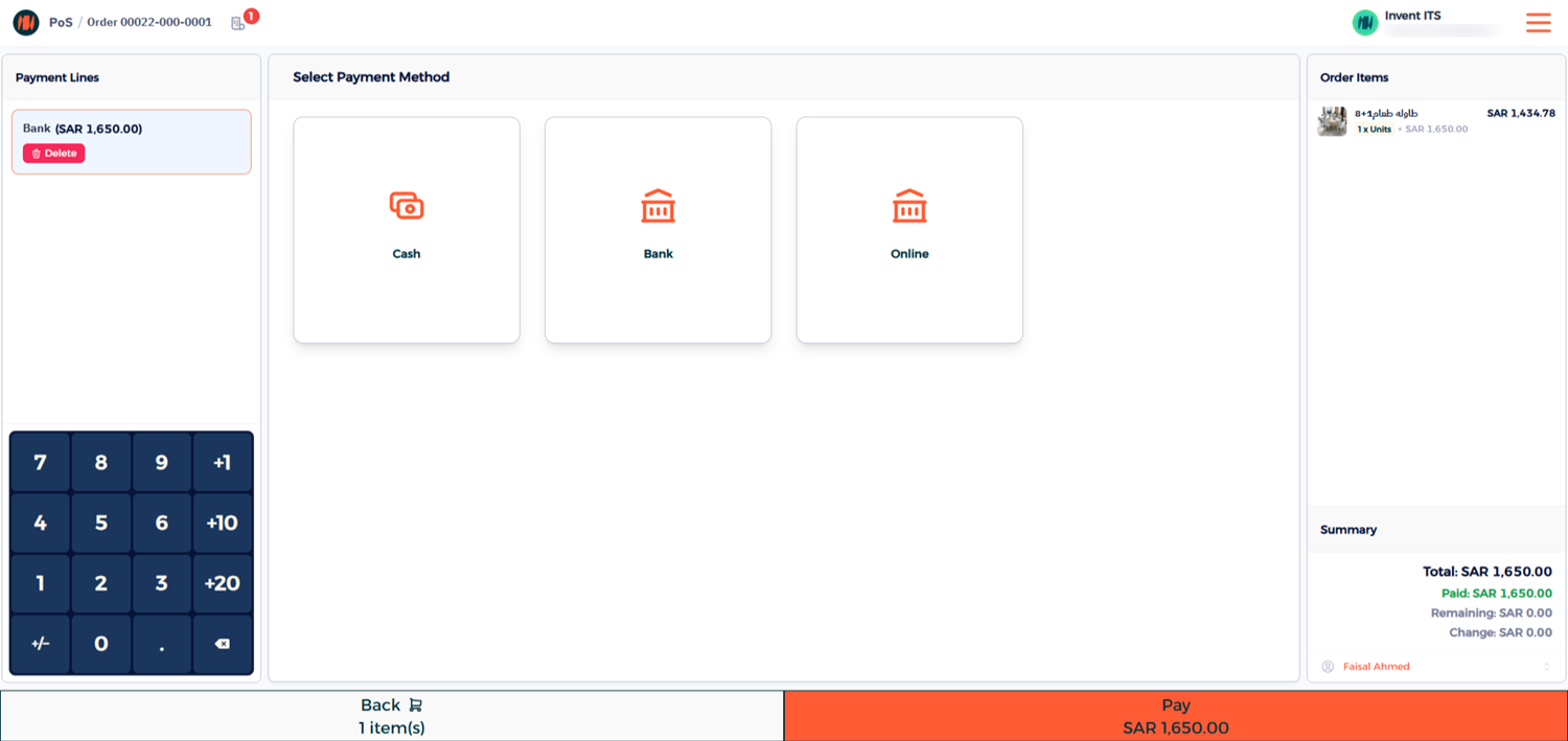 Once the payment is completed, the system will immediately generate a simplified invoice within the POS interface.
