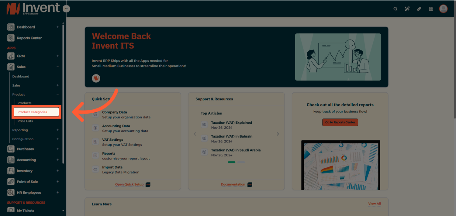 From the Main Menu, navigate to Sales Product Product Categories