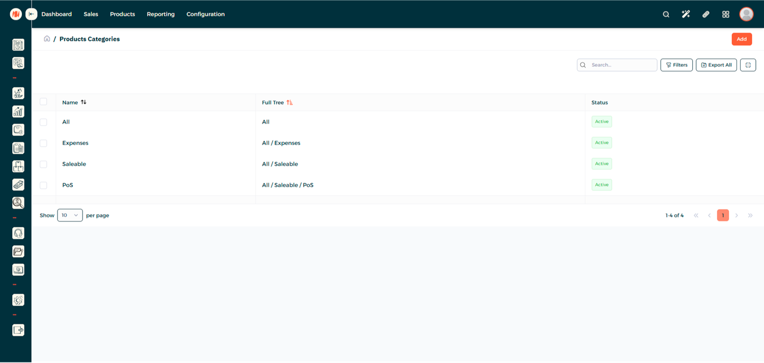 From the Product Category List page , click Add to create a new Category