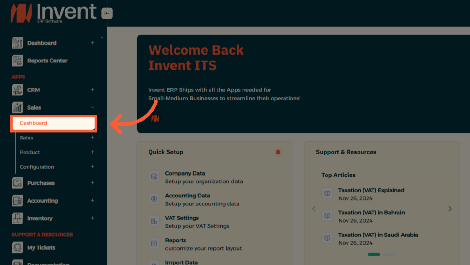 One of the most powerful features of Invent ERP is how all modules are interconnected. From the Sales Dashboard, users can seamlessly transition into operational processes: