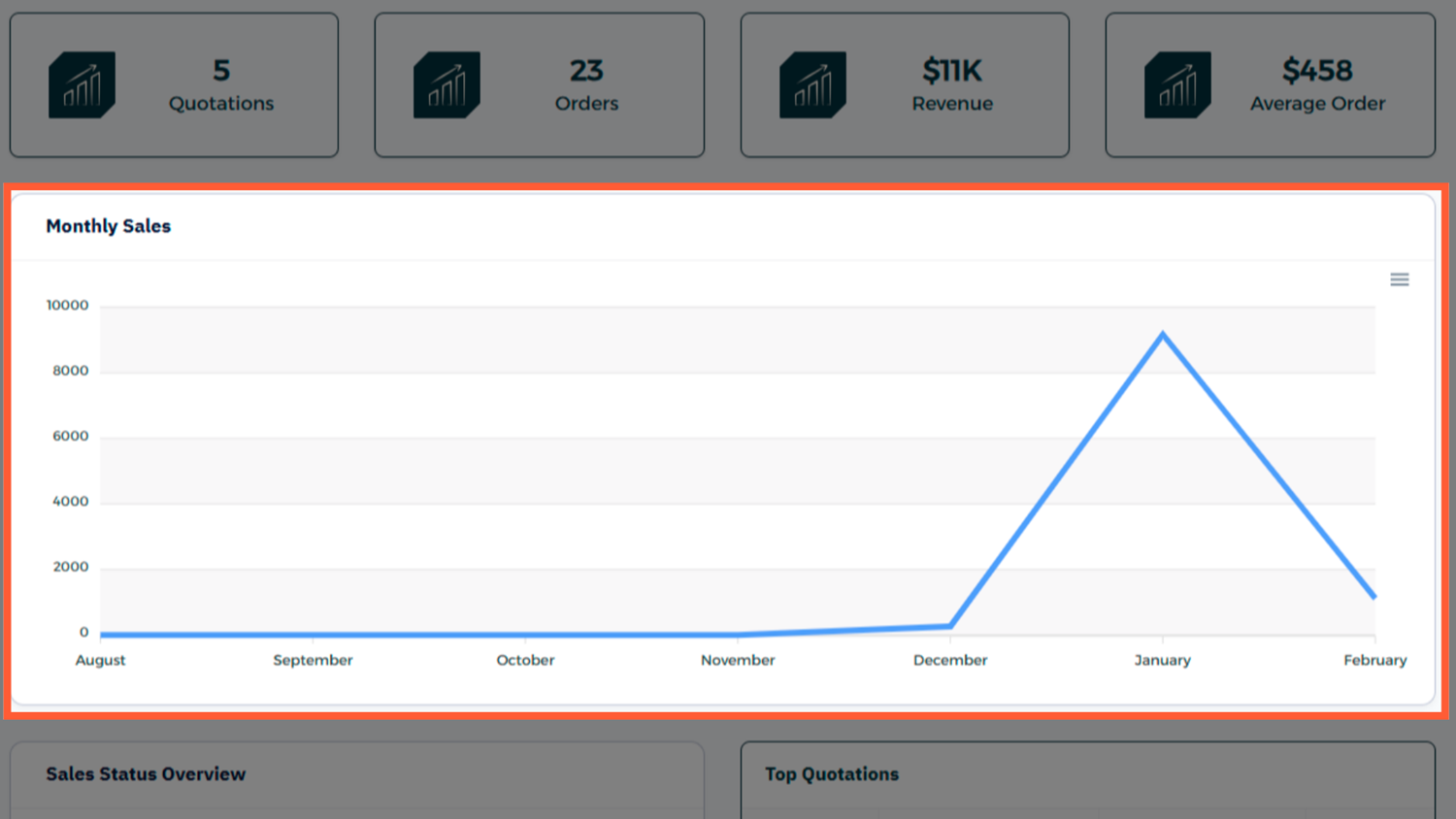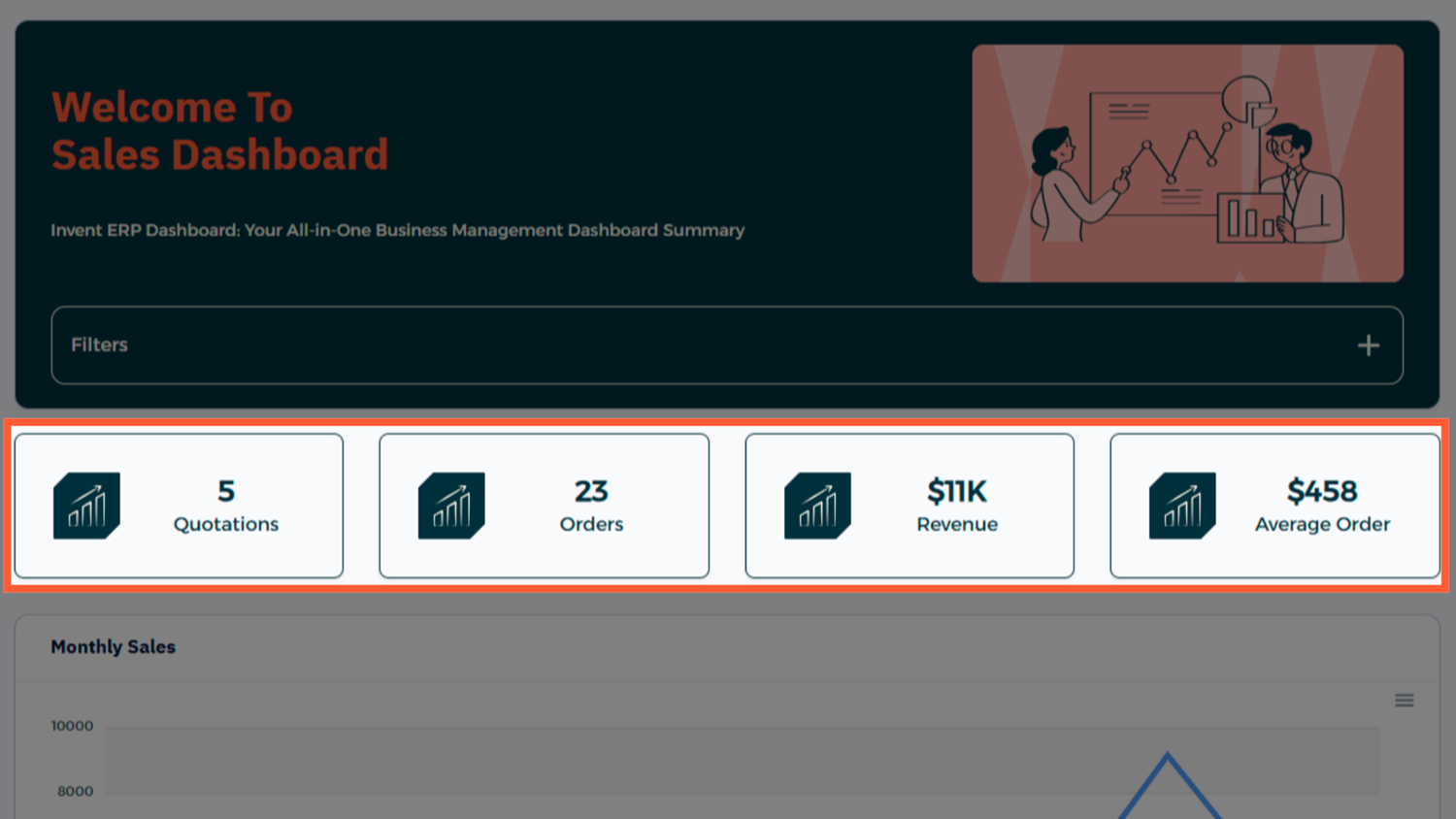 When you open the Sales Dashboard, you'll typically see panels like: